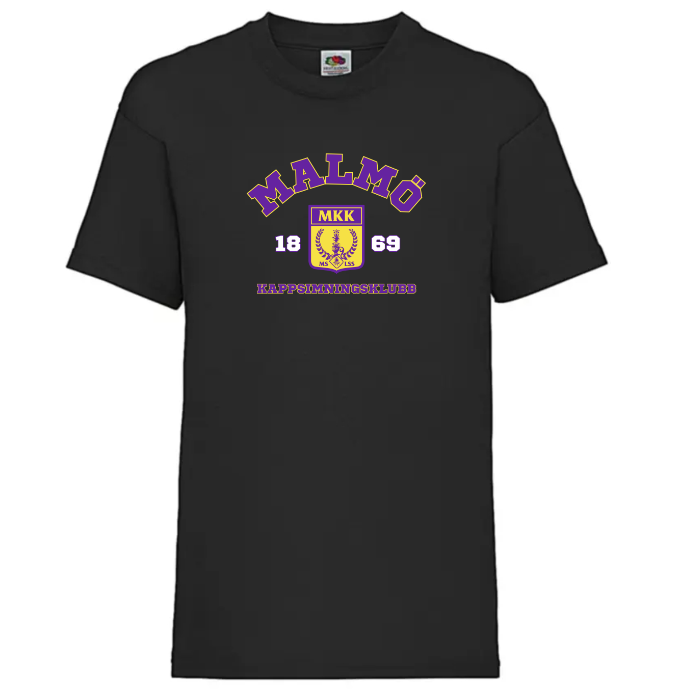 Svart MKK T-shirt med samma tryck som på våra populära hoodies. Perfekt för landträning, i skolan, gympasalen eller annan träning — varhelst på alla dagar när du känner dig lite extra stolt att vara simidrottare i MKK.